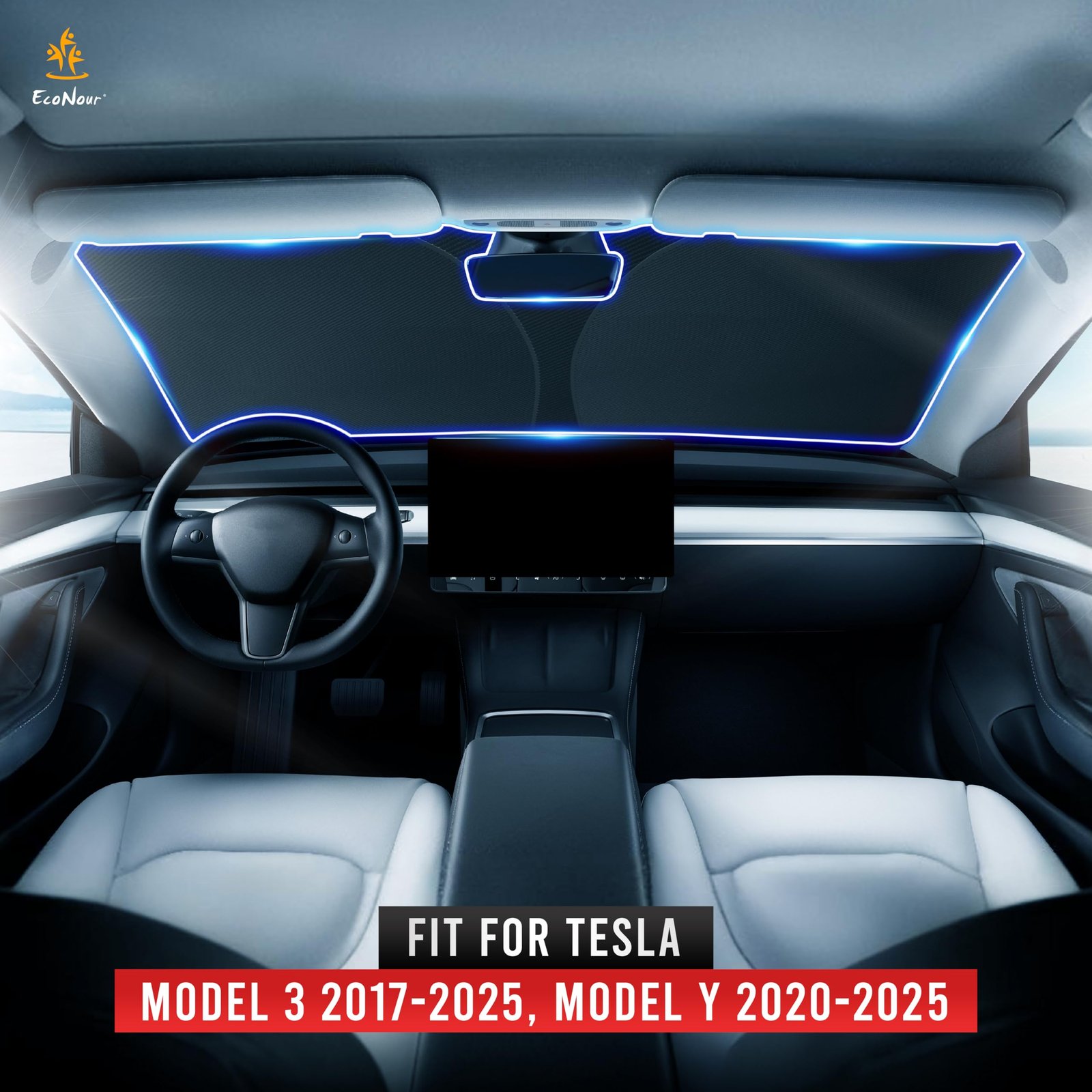 EcoNour Tesla Windshield Sun Shade for Model 3/Y (2016–2025)